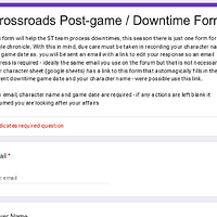 on the “start here” sheet/tab on your character sheet there is a “Link to downtimes” on the left side. this fills in your name, character name and game date automagically
